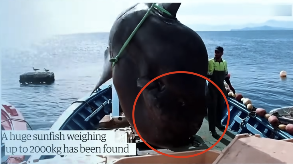 Suddenly, a fisherman noticed a strange movement beneath the creature’s massive fin. Everyone froze as something emerged from a fold in the skin, causing the biologist to turn pale and demand immediate silence.